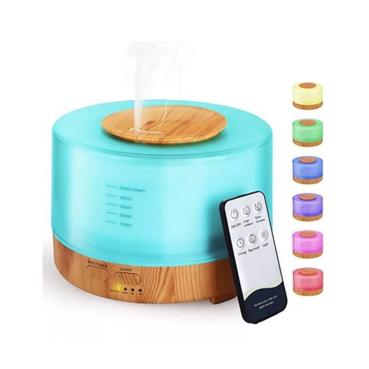 Relájate, respira y dale estilo a tu espacio con este humidificador difusor ultrasónico de 500ml con acabado en madera. Ideal para usar con aceites esenciales, purifica el aire, hidrata ambientes secos y crea atmósferas relajantes con su luz LED de 7 colores.